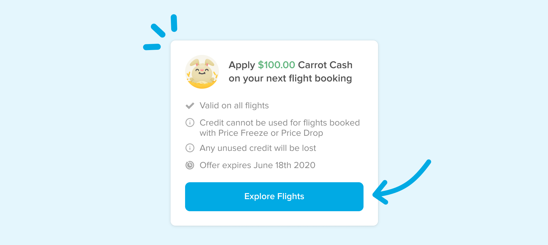 When you are ready to book a new flight using your credit simply tap on “Explore Flights” and your credit will automatically be applied to your booking