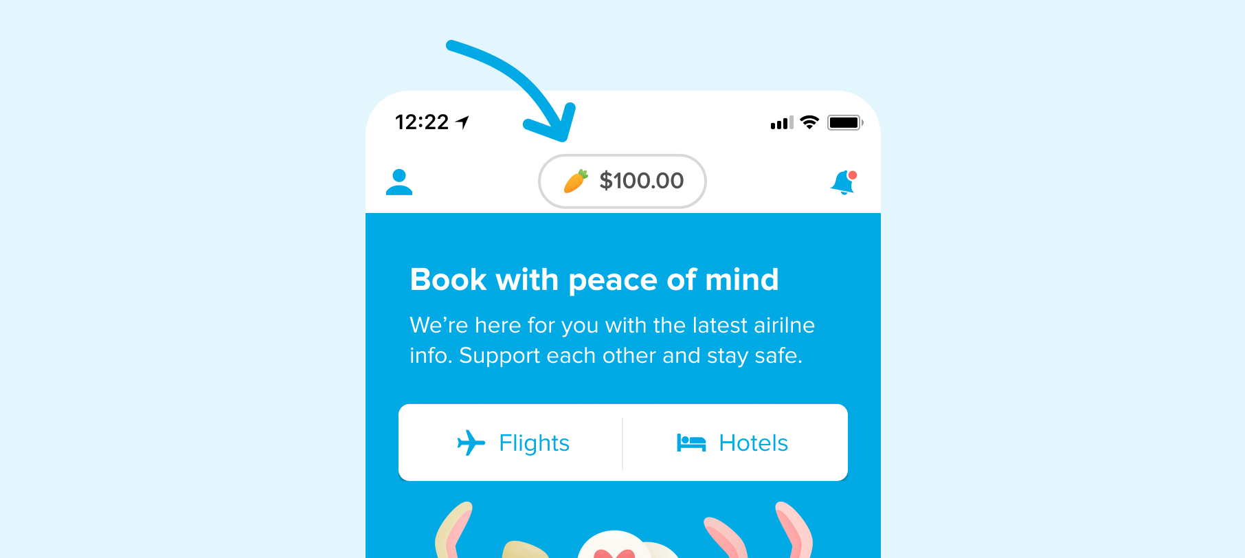 On Hopper's home screen, tap on the carrot icon. This will bring you to your Hopper Wallet